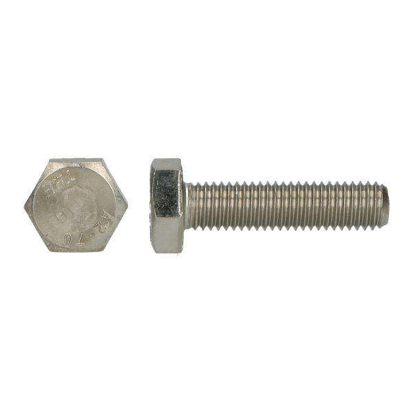 Specificaties Tapbouten : Din 933 EN ISO 4017 voldraad Materiaal : RVS A2 AISI 304 Diameter : 5 mm Totale lengte : 60 mm Type draad : Metrisch Kop Hoogte : 3.5 mm Hoekmaat : 8.79 mm Uitvoering : Zeskant kop Sleutelwijdte : 8.0 mm Aandrijving : Buiten zeskant Sterkte klasse : 500 N/mm²