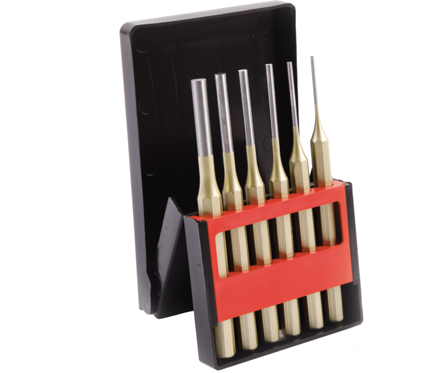 Specificaties Materiaal : CrV-Staal Omschrijving : 6-delige set pendrijvers, in kunststof cassette Type: 164 Inhoud : 1x Pendrijver ø2 1x Pendrijver ø3 1x Pendrijver ø4 1x Pendrijver ø5 1x Pendrijver ø6 1x Pendrijver ø8 Verpakking : 1 stuks