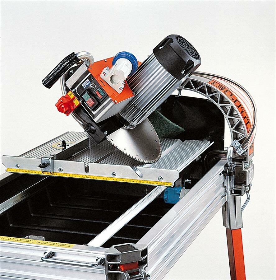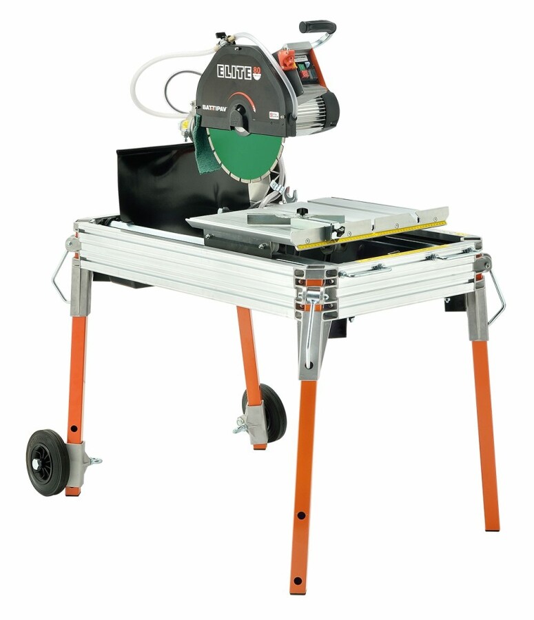 Omschrijving Elite 80S is een ideale tafelzaagmachine voor op de bouwplaats. Ergonomisch van ontwerp met de allernieuwste technische innovaties, compact, robuust en betrouwbaar. Geschikt voor het zagen van bakstenen, steenachtige materialen. Materiaal wordt gezaagd door de slede te verschuiven. De zaagkop kan tot 45° worden gekanteld. De zaagtafel is ontworpen voor diamantzaagbladen van Ø 350 mm. Laser en wielen worden meegeleverd met de machine.