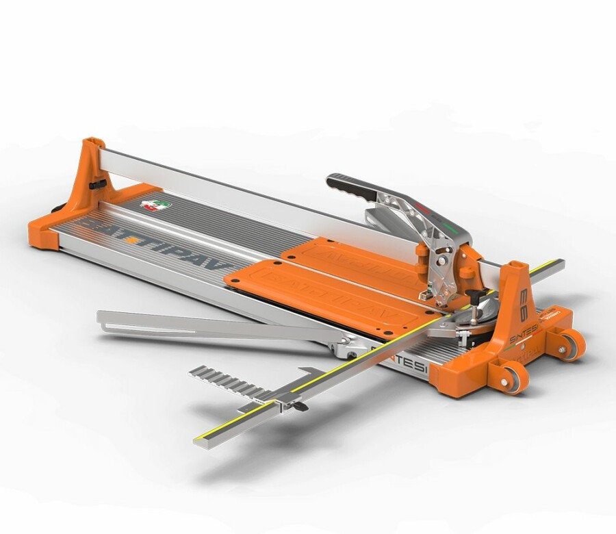 Omschrijving Sintesi 93 tegelsnijder met slede van aluminium met negen kogellagers voor een perfect glijden en uiterste precisie. Gemakkelijk te vervoeren dankzij de standaardwielen en de ergonomische handgreep. Het goniometrisch vierkant kan in beide richtingen worden gedraaid: van -45° tot 0 tot +45°. Leverbaar in 4 lengtes.