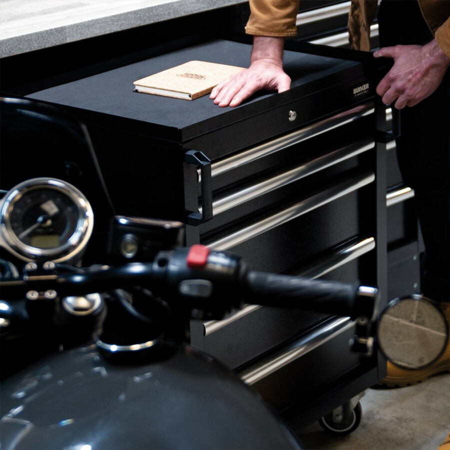 Samenstelling: 11 modules, waaronder onderkasten, ladenblokken en gereedschapspanelen