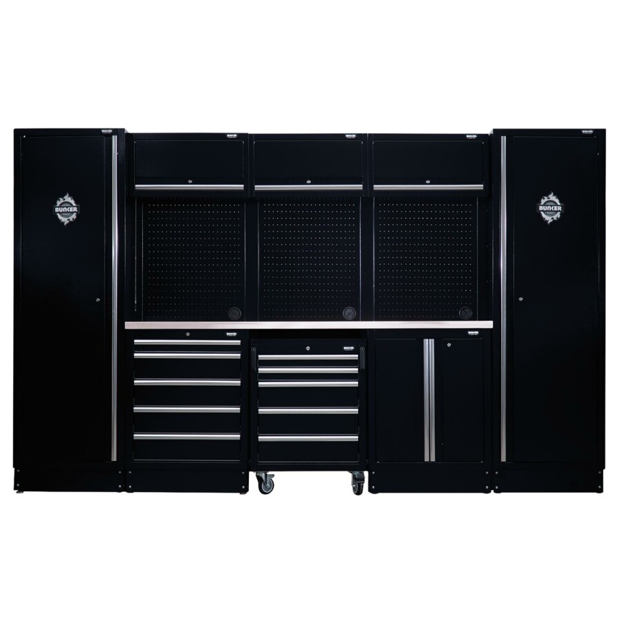 De Bunker modulaire kast type D04402 is een 14 delige opberg en werkplekopstelling, uitgerust met een roestvaststalen werkblad.
