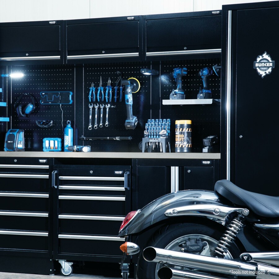 Deze verbluffend ontworpen combo kan eenvoudig in een garage of werkplaats worden geïnstalleerd om uw ideale opslagsysteem te creëren.