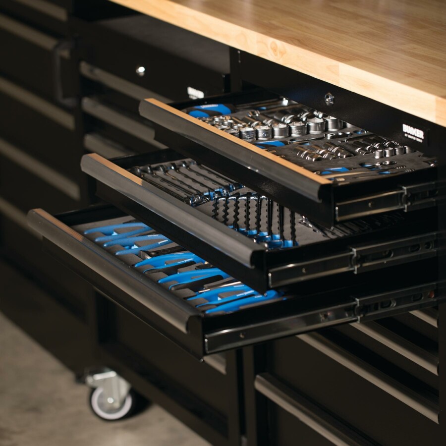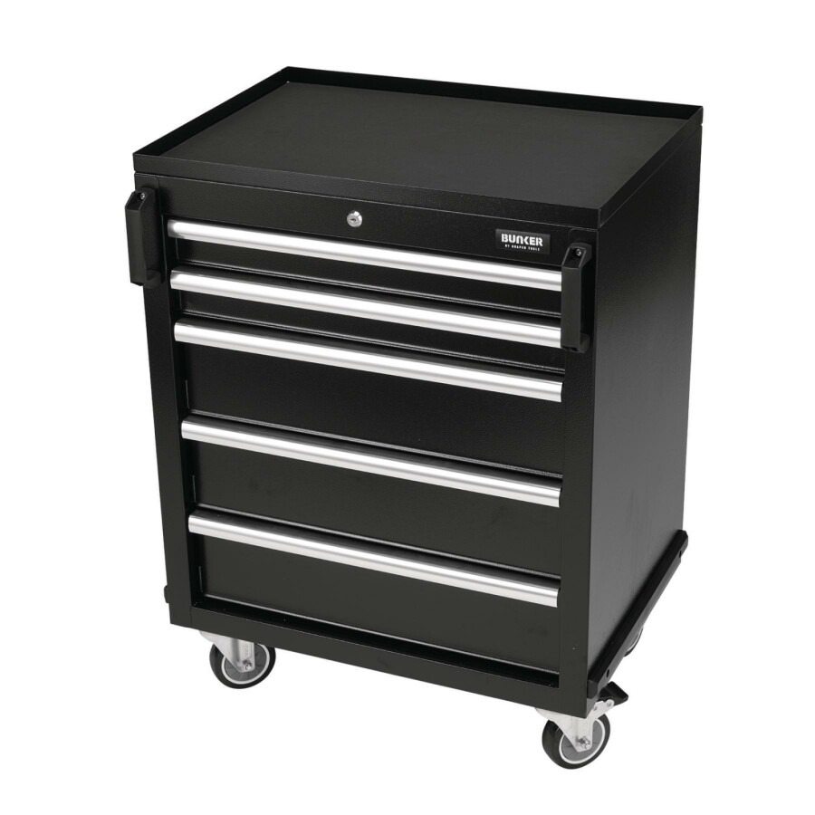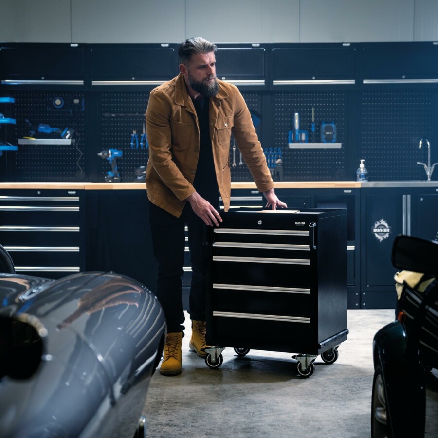Dit prachtig ontworpen meubel van hoogwaardig staal heeft vijf lades verfraaid met stijlvolle aluminium handgrepen. Elke lade heeft een soepele softclose bediening en is bekleed met weelderig schuim om je gereedschap te beschermen. De matzwarte structuurafwerking van de kast is zeer duurzaam dankzij de industriële poedercoating die beschermt tegen krassen, slijtage en corrosie. Dit is een verrijdbare kast, zodat je nuttige spullen bij de hand hebt waar je ze ook nodig hebt in je garage. Zodra u klaar bent om op te ruimen, rolt u het terug naar zijn positie in uw modulaire opbergeenheid. Er zijn twee sterke kunststof handgrepen aan de voorkant van het apparaat en vier duurzame zwenkwielen voor gemakkelijke wendbaarheid. twee zijn uitgerust met remmen. Het heeft een integraal slot voor veiligheid en wordt geleverd met twee sleutels. De kast wordt volledig gemonteerd geleverd en heeft de afmetingen Breed 646 x Hoog 862 x Diep 458 mm. Het kan worden gebruikt als een individuele opbergkast of als onderdeel van het Bunker® modulaire opbergsysteem, dat 24 slimme modulaire opties omvat. Voor uw kwaliteitsborging hebben alle Bunker®-units een garantie van 10 jaar.
