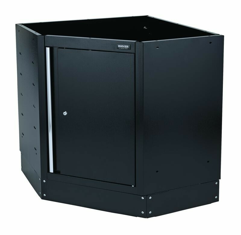 Onderdeel van het Bunker® modulaire opbergsysteem. Dit prachtig vormgegeven meubel van hoogwaardig staal biedt uitstekende opbergruimte die toegankelijk is via één kastdeur met aluminium handgreep. De verstelbare plank aan de binnenkant zorgt voor een veelzijdiger gebruik van de ruimte. De poten van de kast zijn verstelbaar voor een optimale positionering op een ongelijke vloer. De stijlvolle matzwarte structuurafwerking van de kast is zeer duurzaam dankzij de industriële poedercoating die beschermt tegen krassen, slijtage en corrosie. Het heeft een integraal slot voor veiligheid en wordt geleverd met twee sleutels. De kast wordt volledig gemonteerd geleverd en heeft de afmetingen Breed 865 x Hoog 910 x Diep 861 mm. Het kan worden gebruikt als een individuele opbergkast in combinatie met een roestvrijstalen of hardhouten hoekwerkblad als onderdeel van het Bunker® modulaire opbergsysteem, dat 24 slimme modulaire opties omvat. Het wordt geleverd met alle benodigde fittingen voor een eenvoudige installatie. Voor uw kwaliteitsborging hebben alle Bunker®-units een garantie van 10 jaar.