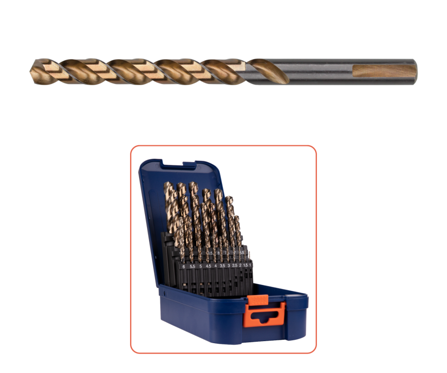 Cobalt 19 delige spiraalborencasette UNI-3 DIN 338 splitpoint Silverline 1-10 mm