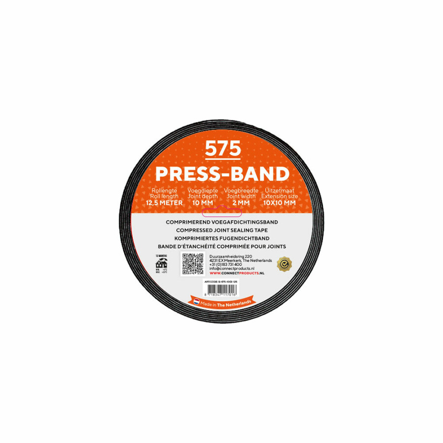 Omschrijving Seal-It 575 Pressband 30/2 mm 30x10 mm kleur zwart Seal-it® 575 Compri-band is een hoogwaardig, elastisch blijvend en open cellig polyurethaan schuim compriband, voor voegafdichting, welke geïmpregneerd is met een brandvertragende en milieuvriendelijke acrylaat kunsthars, voor een duurzame en slagregendichte voegafdichting. Speciaal geschikt als duurzaam voegafdichtingsband tussen langs diverse gevelelementen, zoals puien, vensters, raam en deurkozijnen. Als hoogwaardig voegafdichtingsband inzetbaar, tussen langs vele bouwelementen, om stof, tocht, vocht, geluid en warmteverlies tegen te gaan. Uitstekend toepasbaar als rugvulling voor afdichtingskitten, om een juiste voegdiepte te verkrijgen en of om een driepuntshechting te voorkomen.