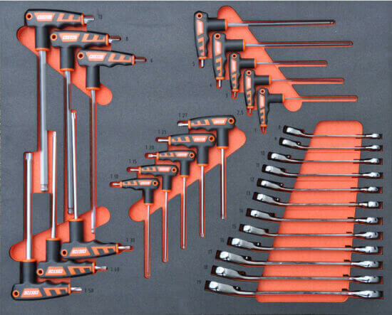 CKW15008S Inbus T-Sleutelset, 8 delig CKW16008S Torx T-Sleutelset 8 delig CWS41912S Steekring-ratelsleutelset L-R 12 delig