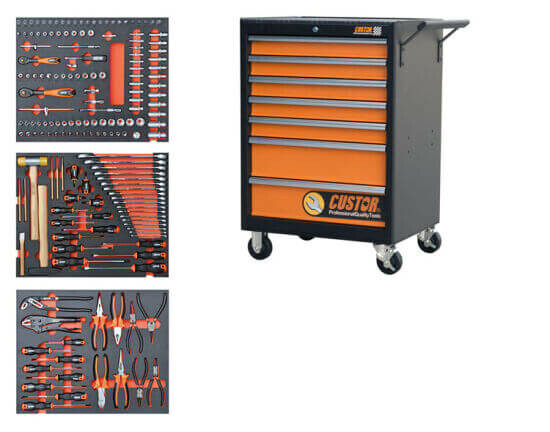 Custor gereedschapswagen 7 laden waarvan 3 laden gevuld in foam