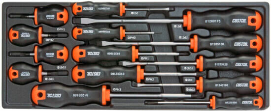 De Custor CSD81214S is een 14-delige schroevendraaierset met ergonomische softgrip handgrepen voor comfortabel en gecontroleerd schroefwerk.