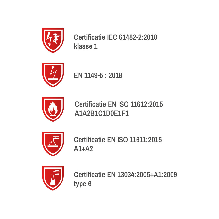 Omschrijving Dassy® Franklin Multinorm Hogezichtbaarheidsvest Multinorm hoge zichtbaarheidswerkkleding biedt veelzijdige, multifunctionele bescherming en beantwoordt aan de 6 meest voorkomende eisen inzake hoge zichtbaarheidskleding, vlamvertragende bescherming, lassen, antistatische eigenschappen, bescherming tegen elektrische vlamboog en vloeibare chemicaliën. Zo heeft alle kleding de nodige oppervlakte fluorescerend en reflecterend materiaal in functie van de veiligheidsklasse, bevat de kleding 1% Negastat® om elektrostatische oplading tegen te gaan, zijn alle zakken voorzien van een klep of onder een welbepaalde hellingsgraad geplaatst zodat er geen vonken in terecht kunnen komen, zijn alle metalen onderdelen verborgen zodat elektrische of hittegeleiding niet