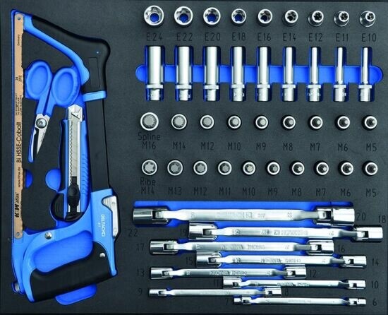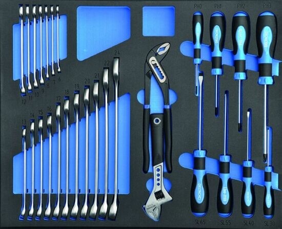 Elk stuk gereedschap ligt overzichtelijk en veilig opgeborgen in duurzame foam inlays voor maximale efficiëntie, orde en snelheid op de werkvloer.