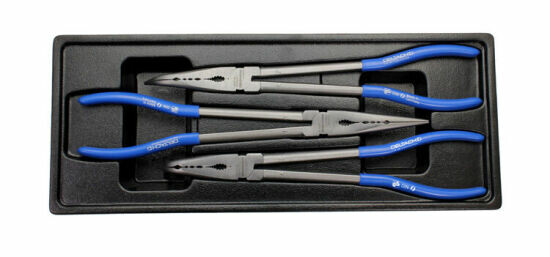 Omschrijving De Deltach XL tangenset bestaat uit drie extra lange tangen, speciaal ontworpen voor optimale reikwijdte en controle bij werkzaamheden op lastig bereikbare plaatsen. Geleverd in een duurzame S module, ideaal voor georganiseerde opslag in gereedschapswagens. Extra lange uitvoering voor beter bereik in krappe of diepe ruimtes Gemaakt van Chroom Vanadiumstaal sterk en slijtvast Ergonomische, Antislip handgrepen voor comfortabel en veilig gebruik Netjes opgeborgen in schokabsorberende S module foam inlay Ideaal voor montage, onderhouds en elektrotechnisch werk Perfect voor het grijpen, buigen of knippen van materiaal in moeilijk toegankelijke zones 3 delige XL tangenset, bestaande uit Bougiekaptang nr. 428010 ; 90º gebogen 4 punt fixering, fijn geribbelde bekken, ook geschikt voor bv. koperbuis, draadeind en kabels, lengte 280 mm. Punttang lang nr. 428020 , fijn geribbelde bekken, lengte 280 mm. Punttang lang 45º gebogen nr. 428030, fijn geribbelde bekken, lengte 280 mm.