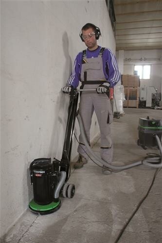 Omschrijving Zeer krachtige 2200 Watt betonslijper voor het slijpen en egaliseren van grote oppervlakken, verwijderen van coating en het voorbereiden van ondergronden bijvoorbeeld voor bij renovatie in woonkamers en kelders, garages en op balkons. Geschikt voor beton, dekvloer, tegellijm, natuursteen, verf, coating, tapijtlijm – met bijbehorende slijpschijf/segmenten accessoires. 2200 Watt eenfase AC-motor - duurzaam, hoge belastingscapaciteit, eenvoudig te onderhouden Segment op de beschermkap afneembaar en verstelbare handgreep - om in de hoeken van de werkplek te kunnen slijpen Borstelring - hoog zuigvermogen voor stofvrij werken door aansluiten van een industrie stofzuiger accessoire op het 35 mm mondstuk Vloergeleider instelbaar in hoogte - beter slijpresultaat Kantelbare vloergeleiding - optimale aanpassing aan de lichaamslengte van de gebruiker voor een goede werkhouding en comfortabele geleiding Laag gewicht en extra handgreep op de motor - eenvoudig transport