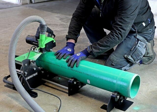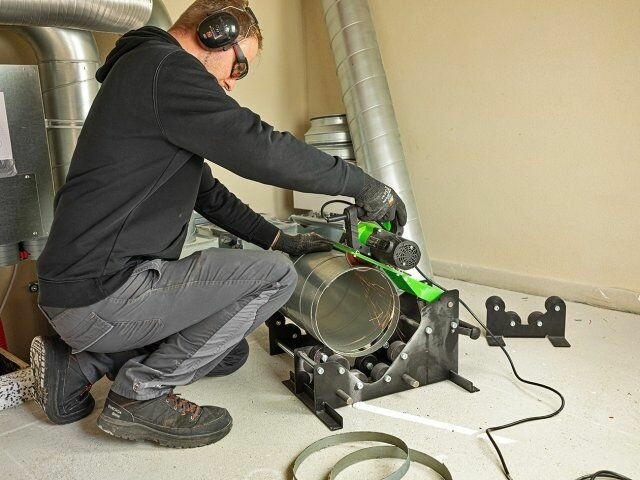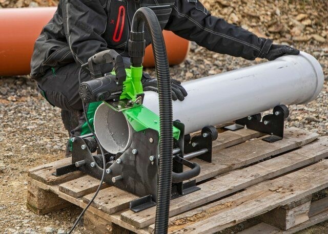 Omschrijving Snel en veilig op maat zagen, afschuinen en ontbramen van dikwandige geluiddichte afwateringsbuizen, spirobuizen, lucht- en ventilatiekanalen tot Ø 350 mm. Stabiele ondersteuning door uitschuifbare rolwagen en ondersteunend frame. Afschuinbreedte traploos instelbaar. Stofzuigeraansluiting - efficiënte afzuiging van snijafval. Compact en handig in transportbox geleverd - ideaal voor mobiel gebruik op de bouwplaats.