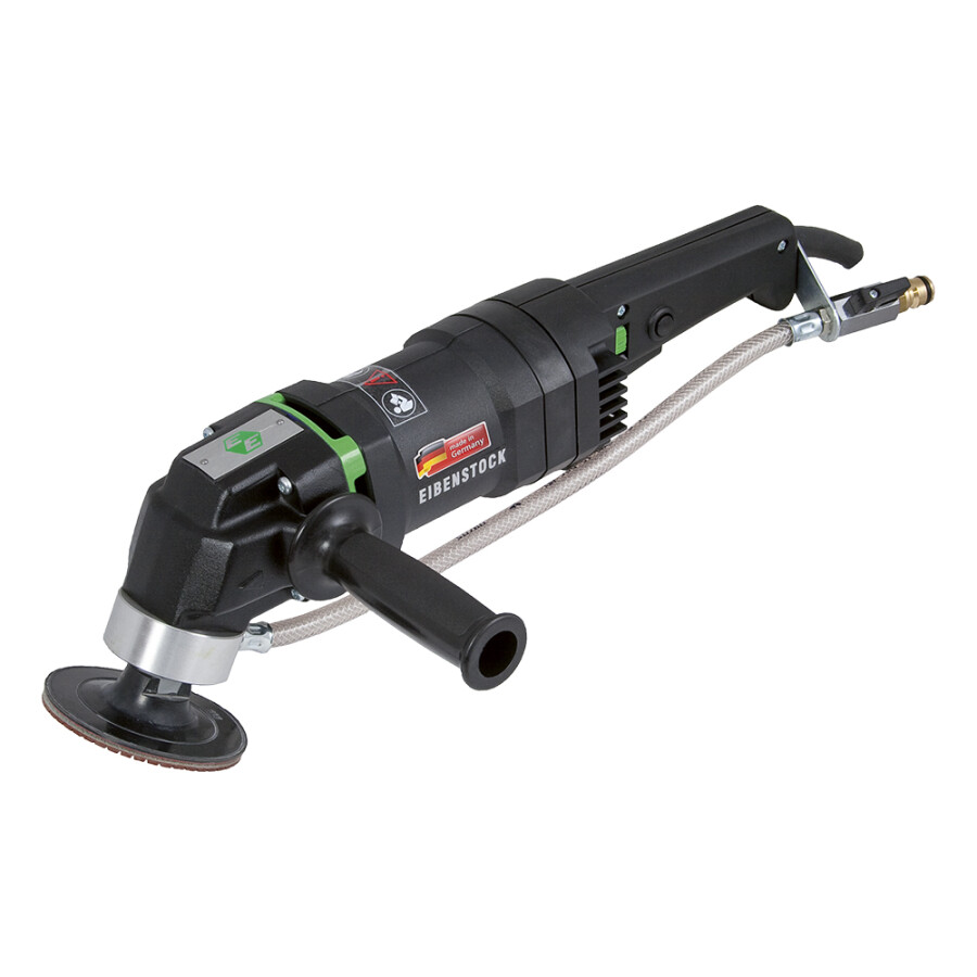 Specificaties Vermogen : 1200 Watt Spanning : 230 Volt Toerental belast: 1500-2800 rpm. Toerental regeling : Variabel Schijfdiameter : 180 mm Toepassing : Nat gebruik Aansluiting : M 14 buitendraad Aansluiting water : Gardena koppeling Beschermingsklasse : Klasse II Beschermingsgraad : IP 20 Aardlekbeveiliging : PRCD-schakelaar Gewicht : 4.4 kg Wordt geleverd in een doos Exclusief : Steunschijf