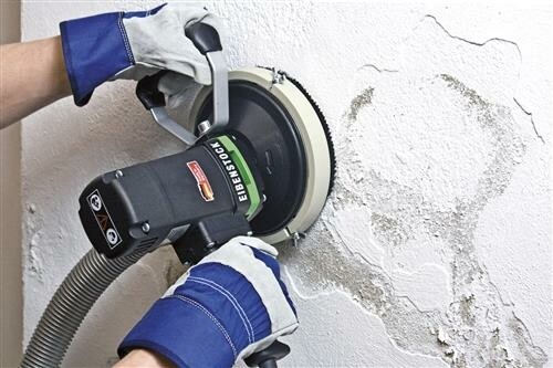 Omschrijving Renovatiefreesmachine met softstart schakelaar voor het saneren van grotere oppervlaktes pleister, lijmresten of oude verflagen. Ook gladde oppervlaktes kunnen opgeruwd worden. De hardmetalen freeswielen zijn bij uitstek geschikt voor het saneren op metselwerk.