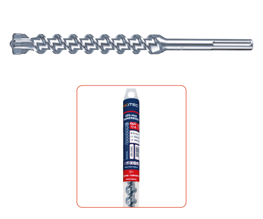 SDS-Max QUATTRO-X is een 4-snijder hamerboor met een hoge levensduur waarmee u precieze boorgaten maakt en tevens zeer rustig,