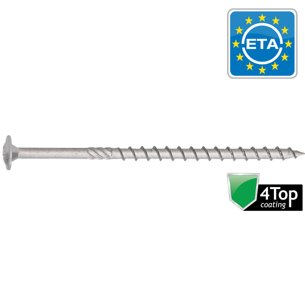 Omschrijving De Hapax tellerkop schroeven met 4Top coating zijn ontwikkeld voor sterke en duurzame houtverbindingen, waarbij een groot klembereik en optimale bescherming tegen corrosie vereist zijn. De tellerkop zorgt voor een groot draagvlak, waardoor het materiaal stevig wordt aangedrukt zonder dat een aparte ring nodig is. De schroeven zijn voorzien van een 4Top coating, die zorgt voor een uitstekende corrosiebestendigheid en bescherming tegen weersinvloeden. Deze coating kan worden gebruikt voor toepassingen in corrosieklasse C4 volgens ISO 12944-2 Dit maakt de Hapax-houtschroef met 4Top coating perfect voor in buitenomgevingen en blijven ze langdurig betrouwbaar onder zware omstandigheden