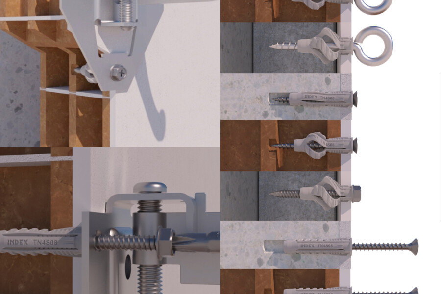Omschrijving De Index TN4S is een universele vierwegplug ontwikkeld voor sterke, veilige bevestigingen in vrijwel alle bouwmaterialen van massief beton en volle baksteen tot holle stenen en gipsplaten. Vierweg-Expansie: bij het indraaien van de schroef spreidt de plug zich in vier richtingen voor maximale grip in vaste én holle ondergronden. Hoogwaardig nylon PA6: slag en temperatuurbestendig -40 °C tot +70 °C, verouderings en vochtbestendig. Anti-draairibben: voorkomen meedraaien in het boorgat voor een snelle, zekere montage. Expandeerd zowel voor als achter uit zodat deze pluggen zeer geschikt zijn in holle bouwstenen. De plug knoopt zich achter de wanddikte op door een ingebouwde torsizone. Compatibel met diverse houtschroeven en spaanplaatschroeven,