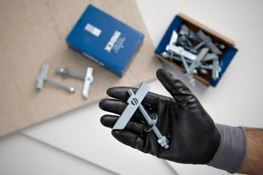 Het anker bestaat uit een kantelmechanisme dat zich opent wanneer het door de wand wordt geplaatst, waardoor het een stevige grip krijgt aan de achterzijde van de wand.