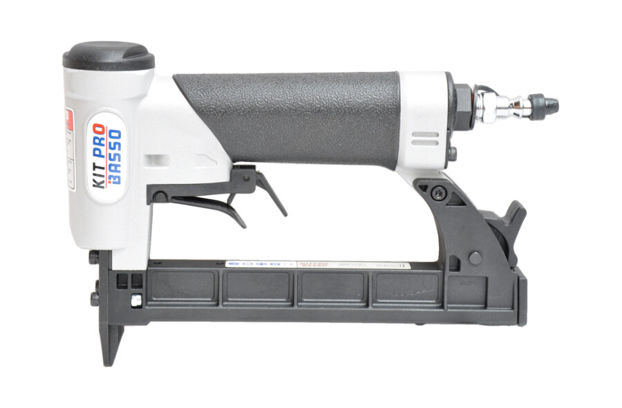 Ideaal voor het bevestigen van lijmverbindingen, Isolatie en stoferen van meubels Geschikt voor stofferingen en bevestigen van DPC-EPDM folie. Geschikt voor nieten type 80 - A nieten van 6 t/m 50 mm Geschikt voor niet lengte : 6-8-10-12-14-16 mm. Specificaties Werkdruk : 4.5-7 Bar Afmetingen : 238 x42 x 152 mm Magazijn capaciteit : 102 stuks Afmeting nieten 0.70x 0.90 mm Lengte nieten : 6-16 mm Gewicht : 0.90 Kg Wordt geleverd in een kunststof koffer.