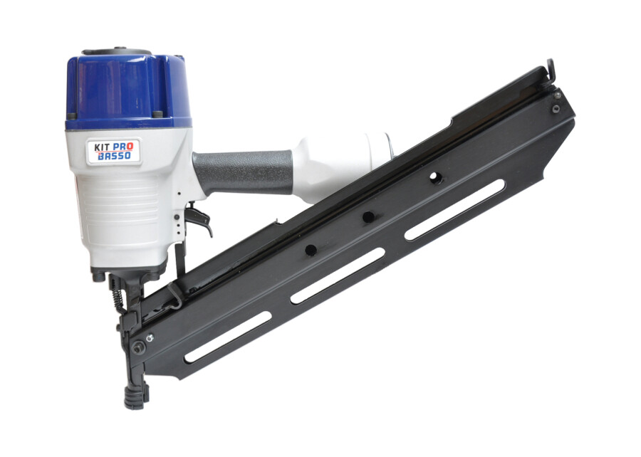 Met de mogelijkheid om stripnagels van 50 tot 100 mm te verwerken, is deze tacker perfect voor diverse toepassingen, van timmerwerk tot meubelbouw. Dankzij het ergonomische ontwerp en de gebruiksvriendelijke functies kun je moeiteloos door je werk gaan zonder concessies te doen aan de kwaliteit. Ideaal apparaat voor timmerwerk, paneelwerk, bekistingen en pallets. Stripspijker tacker die de papiergebonden stripspijker verwerkt. Aluminium behuizing. Regelbare diepte-instelling.Specificaties Werkdruk : 5-8 Bar D-Kop diameter : 7.2 mm. Lengte nagels : 50-100 mm Afmeting spijkers : 2.9-3.3 mm 34º hoek van de spijkers. Geschikt voor : 50-57-63-75-83-90 mm. Magazijncapaciteit : 90 stuks Gewicht 3.8 Kg