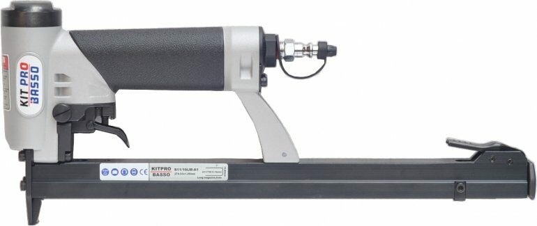 De S80/16LM-A2 is perfect voor uiteenlopende projecten, van het stofferen van meubels tot het aanbrengen van decoratieve elementen. Met een capaciteit van nieten van 6 tot 16 mm is deze tacker ontworpen voor veelzijdigheid en gebruiksgemak. Ideaal voor het bevestigen van lijmverbindingen, Isolatie en stoferen van meubels Geschikt voor stofferingen en bevestigen van DPC-EPDM folie. Geschikt voor nieten type 80 - A nieten van 6 t/m 16 mm Geschikt voor niet lengte : 6-8-10-12-14-16 mm. Specificaties Werkdruk : 4.5-7 Bar Afmetingen : 377 x44 x 160 mm Magazijn capaciteit : 245 stuks Afmeting nieten 0.70x 0.90 mm Lengte nieten : 6-16 mm Gewicht : 1.35 Kg Uitvoering : met verlengd neusstuk