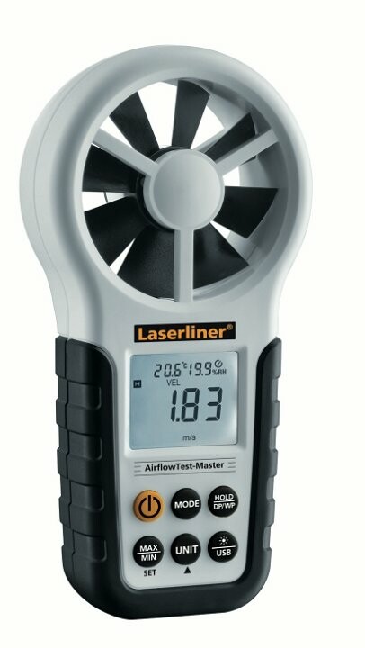 Omschrijving Professionele anemometer voor het meten van luchtstroom, volumestroom en windsnelheid Deze professionele anemometer zorgt voor een nauwkeurige meting van luchtstroom,volumestroom en windsnelheid. De geïntegreerde sensoren registreren constant de omgevingstemperatuur en relatieve vochtigheid en berekenen de dauwpunttemperatuur. Met de hold-functie kan de actuele meetwaarde op het display worden vastgehouden. Het apparaat beschikt over een USB-interface en pc-software voor realtime logging. Door de 1/4" statiefaansluiting kan het apparaat eenvoudig in de testruimte worden opgesteld, ideaal voor langdurige metingen. Het overzichtelijke, verlichte display is gemakkelijk te gebruiken.