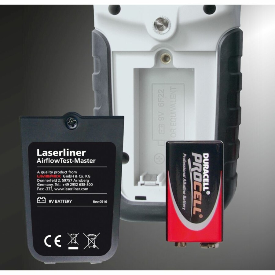 Specificaties Nauwkeurige meting van omgevingstemperatuur, vochtigheid en dauwpunt USB-interface en pc-software voor realtime logging Grote waaier Min/Max-weergave Statiefaansluiting voor langdurige metingen Gemakkelijk af te lezen display LuchtstroomTest-Master Titel Anemometer Windsnelheid Luchtvolumestroom Luchtvochtigheid Omgevingstemperatuur Min/Max/Houden Data overdracht Meetbereik omgevingstemperatuur -10°C ... 60°C Nauwkeurigheid omgevingstemperatuur: ± 1.5°C Meetbereik luchtvochtigheid relatief 20% ... 80% Nauwkeurigheid absolute vochtigheid relatief 20% … 80% Poorten Mini-USB Meetbereik windsnelheid 1.30 … 98.50 ft/s 0.80 … 58.30 knopen 0.90 … 67.0 mil/h 78 … 5900 ft/m Meetbereik luchtvolumestroom 0 … 99990 m³/min 0 … 99990 ft³/min 0 … 9999 m³/s Haven USB Stroomvoorziening 1 x 9 Volt 6LR61 accu Temperatuur : 0°C … 40°C