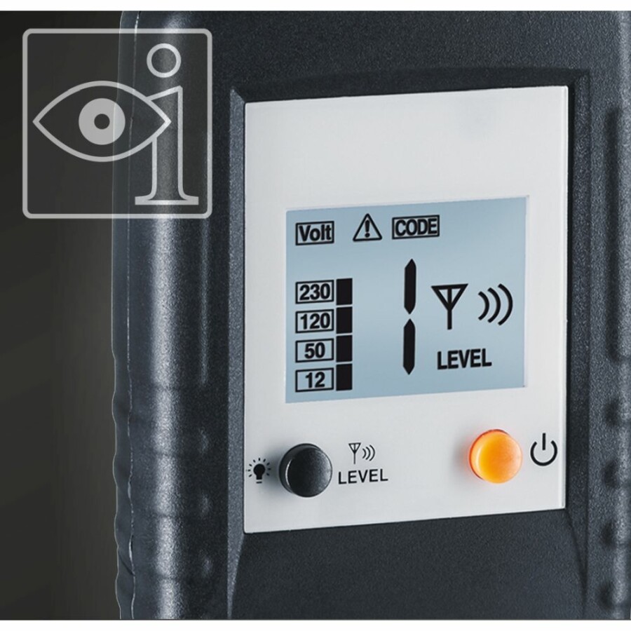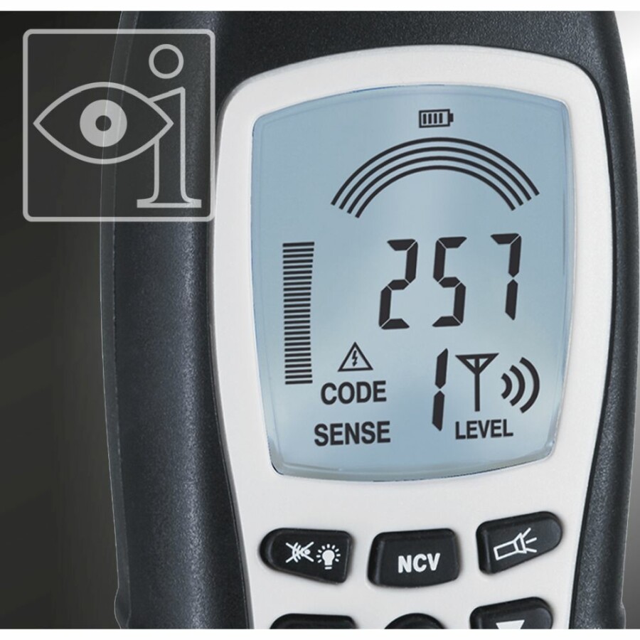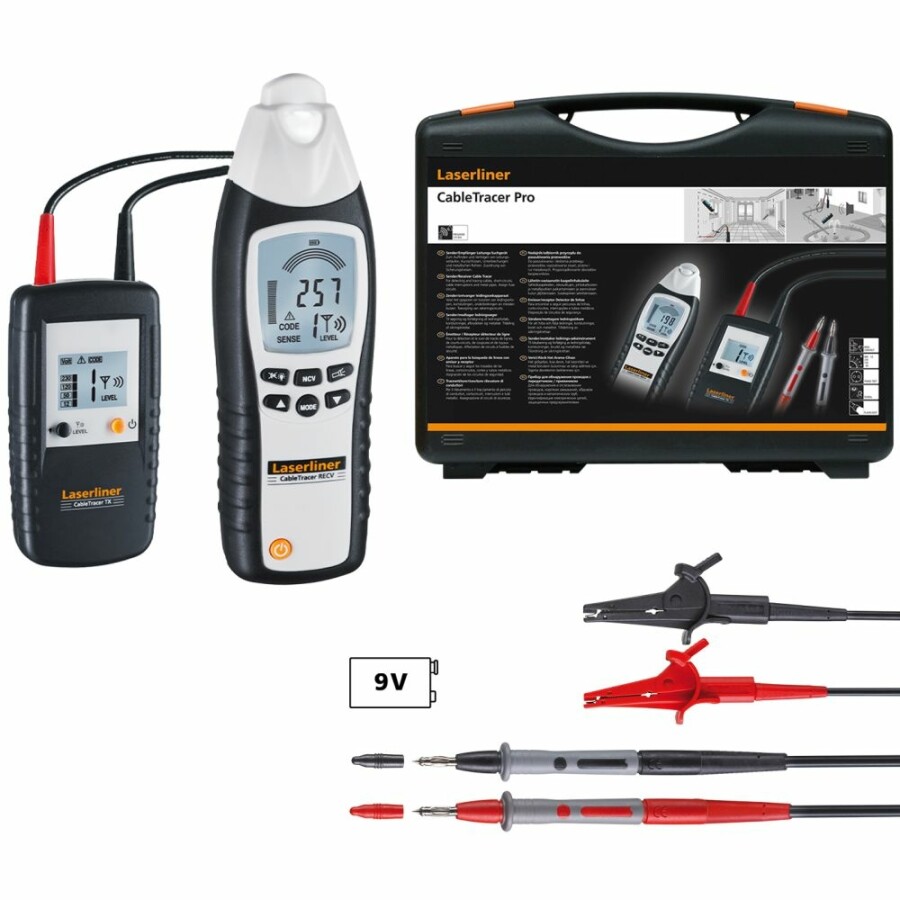 Omschrijving De leidingzoeker, bestaande uit zender en ontvanger, lokaliseert spanningvoerende kabels, veiligheidsschakelaars, zekeringen, metalen buizen en nog veel meer. Op deze wijze kunnen dure verkeerde boringen worden voorkomen. De zender stuurt signalen in de te controleren leiding. De ontvanger herkent contactloos de leidingen met het ingevoerde signaal. Ook kunnen leidingonderbrekingen in bestaande installaties en kortsluitingen in gelegde kabels worden bepaald. Dankzij de signaalcodering kunnen tot zeven zenders en een ontvanger worden toegepast, ideaal voor werkzaamheden in complexe installaties. Het gebruik is ook zonder netspanning mogelijk.