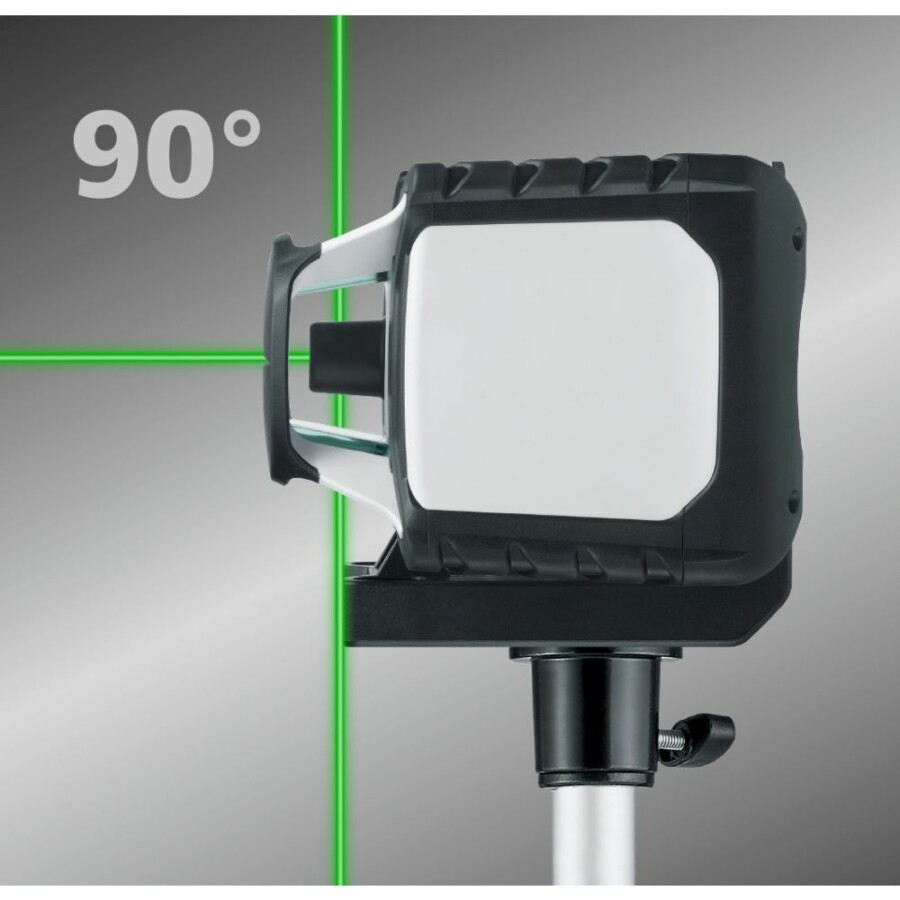 Omschrijving De Cubus G 110 S is een robuuste en volautomatische rotatielaser voor de exacte uitlijning van horizontale en verticale lijnen en hellingen. Een extra referentiestraal vereenvoudigt het uitlijnen van scheidingswanden. De groene lasertechnologie waarborgt een optimale zichtbaarheid. De laserontvanger kan heel eenvoudig op meetlatten worden aangebracht en maakt het aftekenen van een hoogtereferentie mogelijk. Dit heeft het voordeel dat de gebruiker de laser via het krukstatief te allen tijde weer op de vastgelegde hoogte kan instellen. Met de afstandsbediening kunnen alle functies tot op een afstand van maximaal 30 meter comfortabel worden gestuurd. In geval van externe inwerking schakelt het toestel automatisch uit ter vermijding van meetfouten. Een stabiele draagkoffer beschermt het toestel tijdens het transport.