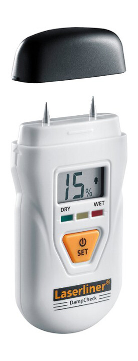 Omschrijving Dit compacte vochtmeetapparaat biedt een gemakkelijke manier om de droogheid van brandhout te testen om energie te besparen en emissies te verminderen. Het kan ook worden gebruikt om de omgevingstemperatuur in een meetbereik van 0° tot 40° en het vochtgehalte in zachte bouwmaterialen te bepalen. De nat/droog-indicator heeft drie gekleurde Led's en geeft direct informatie over de mate van vochtigheid of droogte in het te inspecteren materiaal. De resultaten worden numeriek weergegeven en de actuele meetwaarde kan met de hold-functie op het display worden vastgehouden.