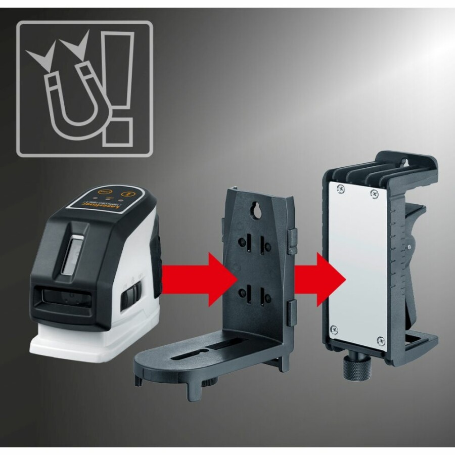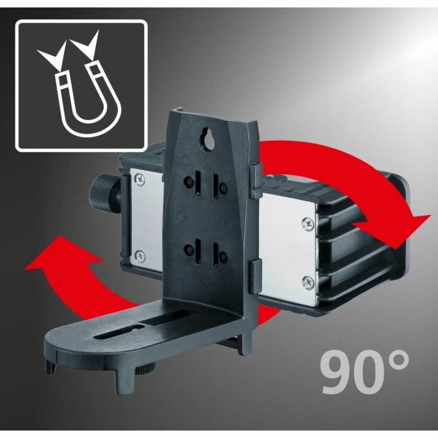 Exacte horizontale en verticale uitlijning van objecten Gemakkelijk uitlijnen van hellingen Twee goed zichtbare, individueel instelbare laserlijnen Magnetische klem en muurbeugel zorgen voor veelzijdige bevestiging zonder beschadiging van oppervlakken Geïntegreerde handontvangermodus voor buitentoepassingen Optionele ontvanger voor het detecteren van laserlijnen op een afstand tot 40 meter Met 1/4" schroefdraad Met 5/8" schroefdraad
