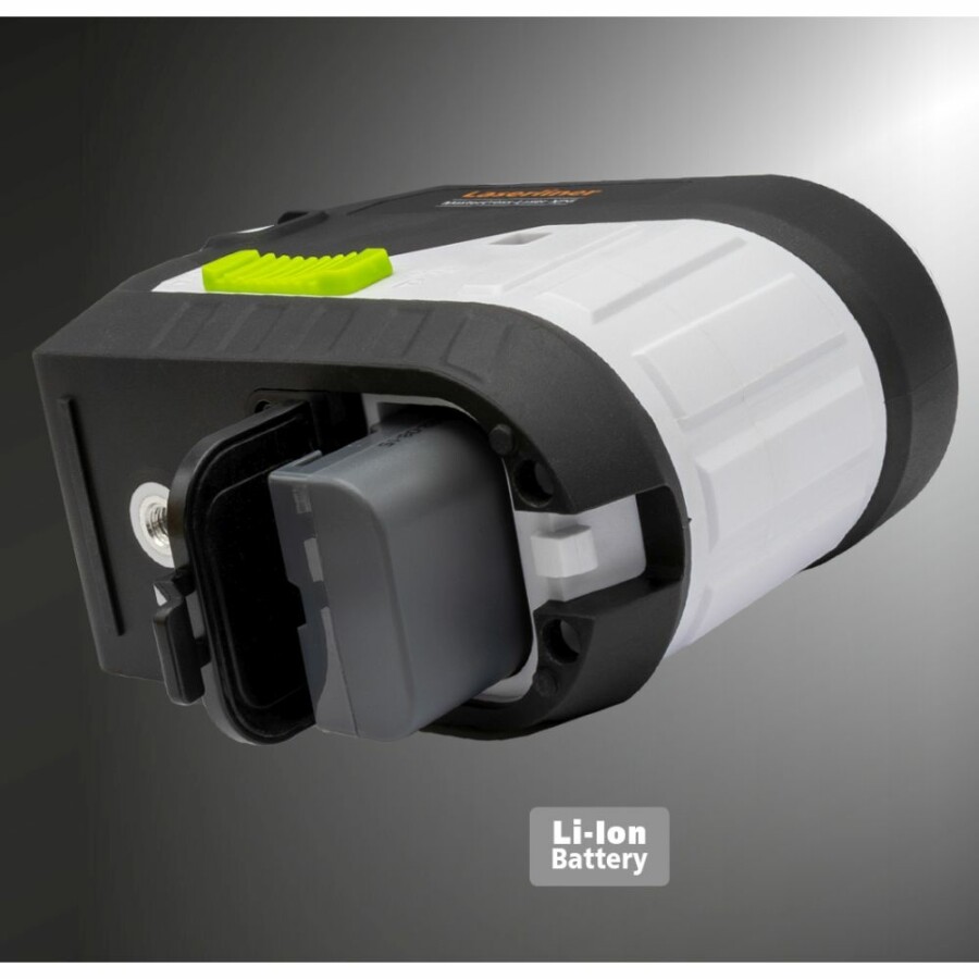 Specificaties Horizontaal / Verticaal nivelleren Handmatige hellingsfunctie loodlaser Boven/Beneden Laserpunten Links / Rechts Verwisselbaar accusysteem Handontvangermodus Tilt-waarschuwingsfunctie Zelfnivelleerbereik : ± 2.5° Nauwkeurigheid : ± 0.2 mm / meter Nivellering : Automatisch Zichtbaarheid karakteristiek 55 meter Lasergolflengte : 515 nm Laserklasse : 2 Stroomvoorziening : Li-ion accupak 7.4 V / 2,6Ah / 19.24Wh Gebruiksduur : ca. 8 uur Werkomstandigheden : 0°C … 50°C Opslagvoorwaarden : -10°C … 70°C Afmetingen :128 x 110 x 67 mm Gewicht : 588 gram
