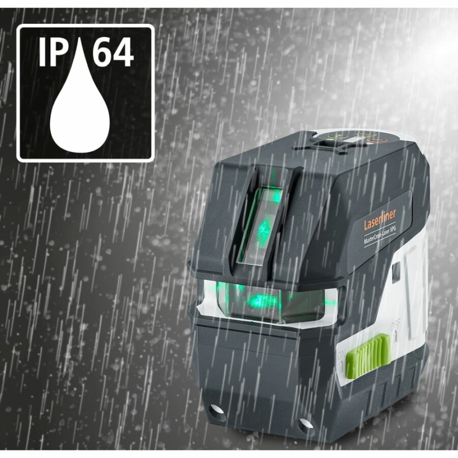 Nauwkeurig horizontaal en verticaal uitlijnen van voorwerpen Goede zichtbaarheid dankzij groene lasertechnologie 4 PointProjection: Laserpunten boven, onder en aan de zijkanten in een hoek van 90° voor een exacte markering van muur tot muur Loodfunctie voor synchroon werken op vloer en plafond Bijzonder felle loodpunten, optimaal voor gebruik in gebouwen met hoge ruimtes Magnetische klem- en wandhouders voor het ophangen, het horizontale en verticale aanklemmen op profielen en het fixeren op metalen oppervlakken MicroControl: Fijnafstelling opzij voor de exacte, verticale afstelling van de laserlijnen op randen van voorwerpen Eenvoudig uitlijnen van hellingen met handmatige neigingsfunctie Meetveiligheid dankzij automatische uitschakeling met ADS-tilt Afzonderlijk inschakelbare laserlijnen Tijdbesparende automatische uitlijning Lange bedrijfsduur dankzij krachtig High Capacity Pack met lithium-ionen-technologie Oplaadbaar via USB-C-interface en USB-A-naar-USB-C-kabel Variabel aanbrengen op statieven per 1/4"-schroefdraad aan de laser en 5/8"-schroefdraad aan de klem- en wandhouder Geïntegreerde handontvangermodus voor buitentoepassingen en grote reikwijdten IP 64: goed beschermd tegen stof, ideaal voor gebruik onder ruwe werkomstandigheden