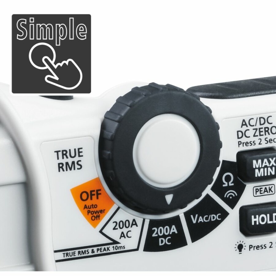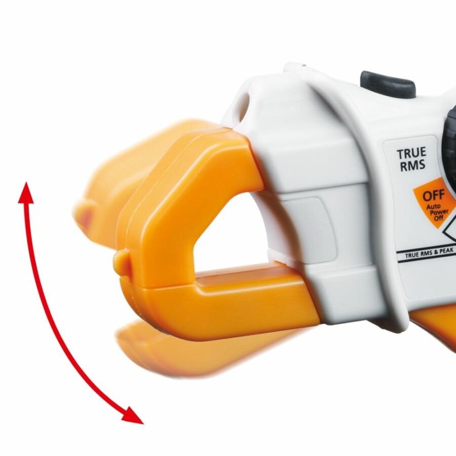 Omschrijving De professionele meettang met meting van de echte effectieve waarde De professionele meettang is geschikt voor gebruik op het gebied van stroom, spanning, weerstand, doorgangstest en diodetest. Dankzij de hoge meetresolutie kan een exacte spannings- en weerstandsmeting worden uitgevoerd. Het apparaat bepaalt gelijk- en wisselstromen met de weergave van de echte effectieve waarde True RMS, onafhankelijk van de curvevorm. Bij de gelijkstroommeting zorgt de DC-nullstelling voor exacte resultaten. Spanningvoerende onderdelen kunnen snel worden gelokaliseerd met de geïntegreerde contactloze spanningsindicator. Veranderende meetgrootheden kunnen per min/max-functie worden geregistreerd. Een extra Peak-functie is bedoeld voor de bepaling van kortstondige inschakelstromen.
