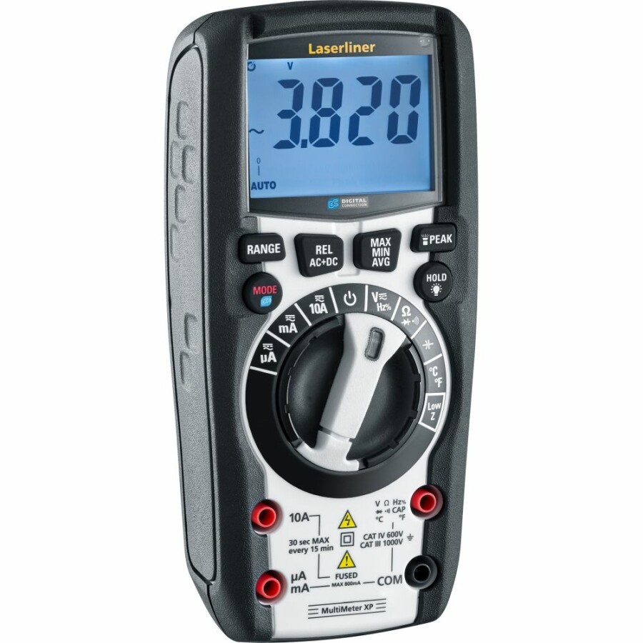 Omschrijving De professionele multimeter maakt snelle en nauwkeurige metingen mogelijk op het gebied van spanning, stroom, weerstand, capaciteit, frequentie, tastgraad en contacttemperatuur. Via de diodetest kan een functie- en polariteitsbepaling worden uitgevoerd. De automatische doorgangstester informeert de gebruiker door middel van een akoestisch signaal. Met de digital connection-interface kunnen de meetwaarden naar een smartphone overgedragen en goed gedocumenteerd worden. Het toestel beschikt over een ergonomische, slagvaste behuizing en een geïntegreerde zaklamp voor de verlichting van de te controleren plek.