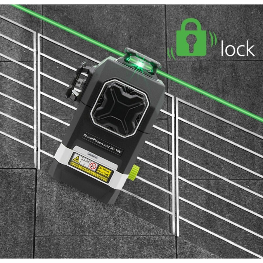 Drie extreem heldere groene lasercirkels met een uitstekende zichtbaarheid tot 60 meter Compatibiliteit met 18 Volt accusystemen: Werkt met 18 Volt accu's van verschillende bekende fabrikanten dankzij afzonderlijk verkrijgbare PowerAdapters Efficiënt gebruik: laser integreert zich dankzij de passende adapterkeuze naadloos in het bestaande 18V-randapparatuursysteem van de klant Eenvoudig uitlijnen van hellingen met handmatige neigingsfunctie Individueel schakelbare lasercirkels Loodfunctie voor synchroon werken op vloer en plafond MicroControl: uiterst nauwkeurige aanpassing van de verticale laserlijnen via zijdelingse fijnafstelling zonder de laser zelf te hoeven verplaatsen Middelpunt: Bij gebruik van de zijfijnaandrijving blijven de posities van het bovenste en onderste laserkruis, die het schietlood vormen, ongewijzigd Solide aluminiumvoet met voorbeeldige stabiliteit Tijdbesparende automatische uitlijning Geïntegreerde handontvangermodus voor buitentoepassingen en grote reikwijdten Pendelvergrendeling voor een veilig transport Met 1/4"-schroefdraad Met 5/8"-schroefdraad Ook geschikt voor netvoeding