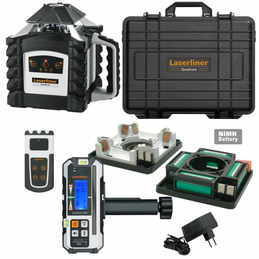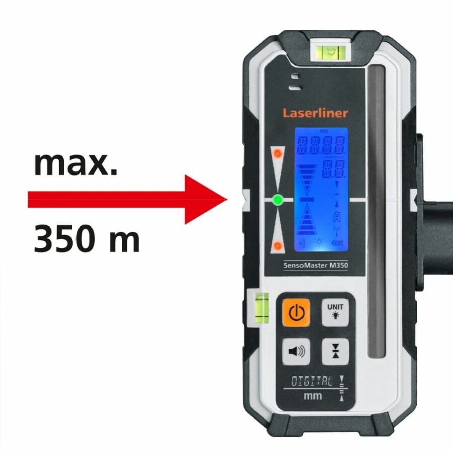 Omschrijving De Quadrum M350 S is een robuuste en volautomatische rotatielaser voor de exacte uitlijning van horizontale en verticale lijnen. Met een radius van 350 meter biedt het toestel een uitgesproken groot laserontvangstbereik. Met de afstandsbediening kunnen de functies tot op een afstand van maximaal 40 m comfortabel worden gestuurd. Met behulp van de handmatige neigingsmodus kunnen hellingen tot 5° worden aangelegd. Bij externe inwerkingen schakelt het toestel automatisch uit.