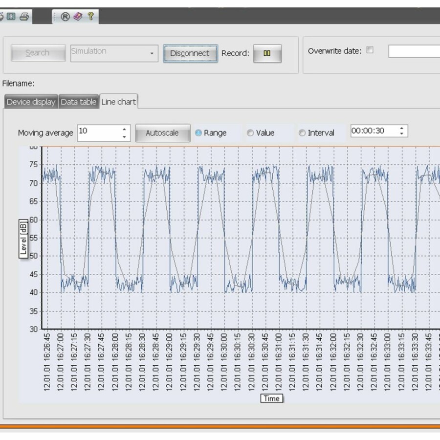 Omschrijving Geluidsniveaumeter met geïntegreerde langdurige opslag Dit precisie-geluidsniveaumeetinstrument maakt gebruik van frequentiewegingsfilters volgens de dB A en dB C standaardcurves. Een keuze uit twee tijdswegingsfactoren snel/langzaam maakt een optimale aanpassing aan de ruisdynamiek mogelijk. De selecteerbare analoge indicator geeft een visuele beoordeling van het testgebied. De meting wordt gedaan met een langdurige opnamefunctie met 16.000 opslagpunten of realtime logging op een pc met behulp van de meegeleverde software. Het apparaat heeft analoge DC- en AC-uitgangen en een verlicht display. Kalibratie en afstelling gebeurt door middel van een standaard 94 dB/1 kHz geluidsniveaukalibrator.