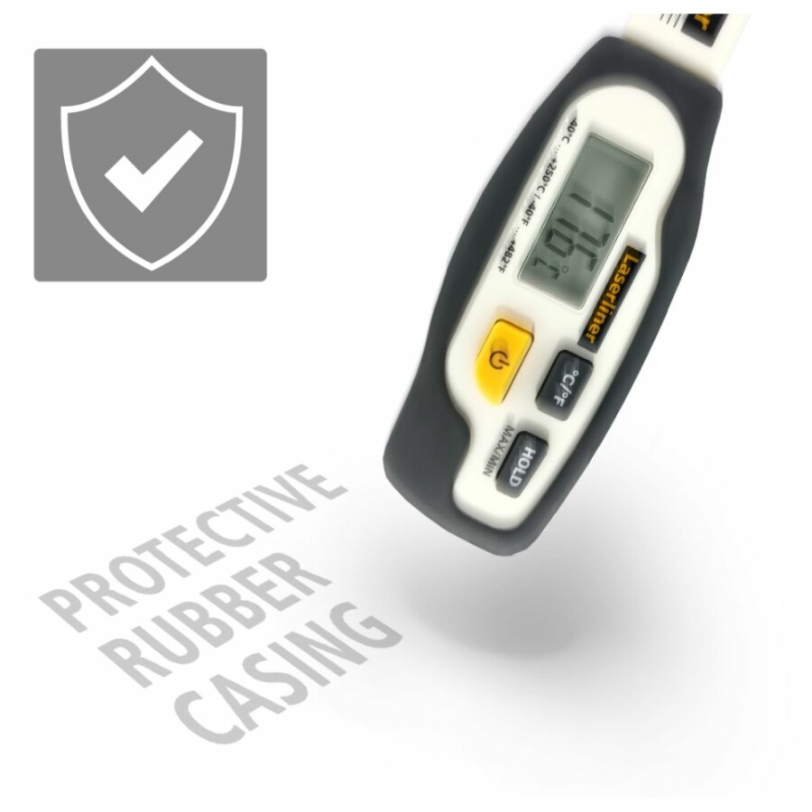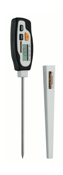 Omschrijving Digitale thermometer voor huishoudelijke, gastronomie, handel, ambacht en industriële toepassingen De digitale thermometer kan worden ingebracht of ondergedompeld en is geschikt voor toepassingen in de gastronomie, huishouden, ambacht en industrie. De minimale en maximale meetwaarden kunnen worden weergegeven om temperatuurverschillen vast te stellen. Voordelen van het apparaat zijn het grote meetbereik en de snelle reactie- en meettijd. Digitale thermometer voor gebruik in de gastronomie, huishouden, ambacht en industrie Veelzijdige toepassing door groot temperatuurmeetbereik Snelle reactietijd Hold-functie voor het vergrendelen van de huidige meetwaarde op het display Min/Max-weergave Gemakkelijk af te lezen LC-display