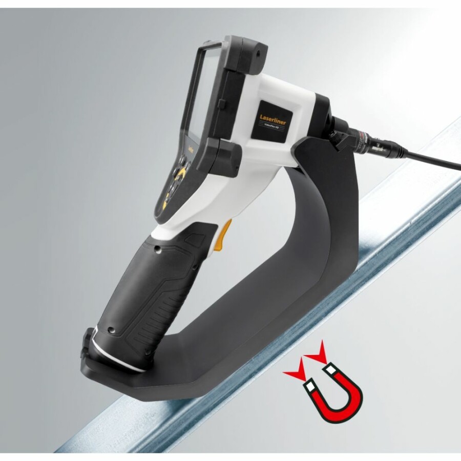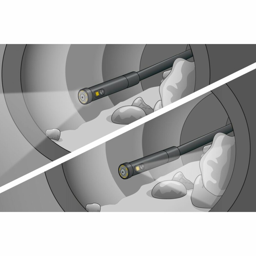 Het professionele video-inspectiesysteem met vervangbaar front- en zijaanzicht is ideaal voor exacte, visuele controles in buisleidingen, holle ruimten in muren en voertuigen. De camera met hoge resolutie biedt zeer gedetailleerde beeld- en video-opnames met 1:1-weergave op het display zonder kwaliteitsverlies. Met de duidelijke digitale zoom kunnen details uitstekend worden herkend. Andere voordelen zijn de eersteklas led-objectverlichting, optimale contrastweergave van grijsschakeringen en de magnetische standaard. Aan de benzine- en dieselresistente camerakop kunnen de magneet- en haakhulpstukken worden aangebracht voor het aantrekken of optillen van moeilijk te bereiken voorwerpen.