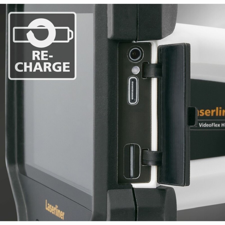 Specificaties Live-beeld Opname beeld/video Weergave beeld/video Zoom Objectverlichting Real time-stempel Beelduitlijning Externe beeld /Video-uitgave Fotoformaat : Jpeg Resolutie display : 1280 x720 Pixels Gegevensoverdracht Diameter camerakop :ø 6 mm Aantal leds :4 Aansluitingen:USB type C Interface : USB / WLAN Stroomvoorziening : Li-ion accupak 3.7 Volt / 2.6 Ah Gebruiksduur : ca. 6 uur Temperatuur : -10°C … 50°C Gewicht : 780 Gram