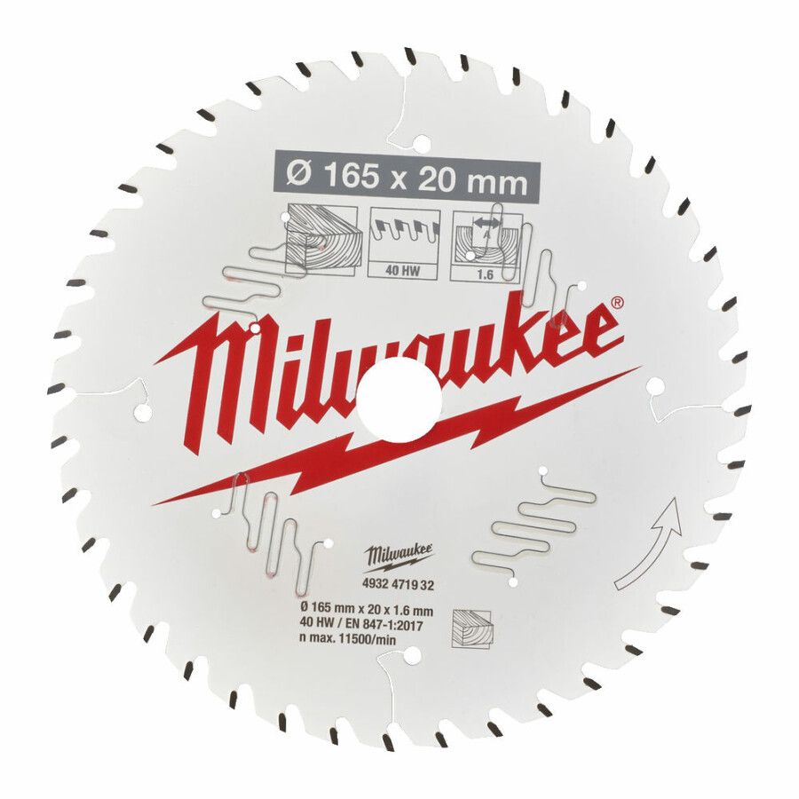 Milwaukee cirkelzaagblad 165 x 20 x 40 HM tanden , dikte 1.6 mm