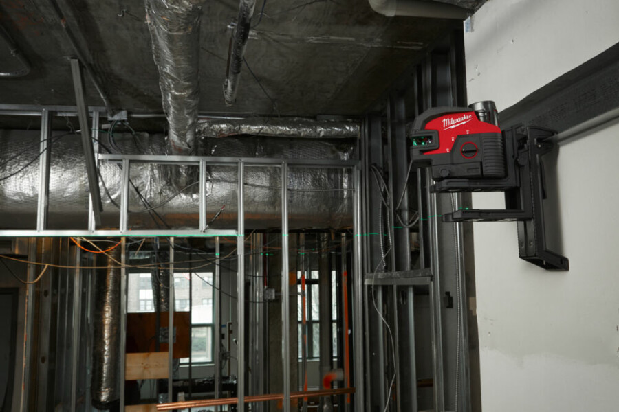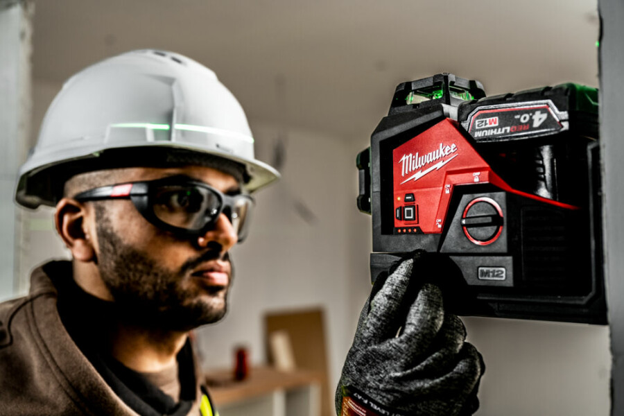 Omschrijving De Milwaukee M12 CLL4-0C is een professionele 12 Volt kruislijnlaser ontworpen voor vakmensen die precisie en duurzaamheid eisen op de werf. Dankzij de 4 modulaire lijnen 2 verticale, 1 horizontale en 1 loodlijn naar boven biedt dit toestel een complete 360° dekking, ideaal voor toepassingen als tegelzetten, plafonds monteren, uitlijnen van muren of elektrische installaties. Laserlijnen: 4 x 360° 2 verticaal, 2 horizontaal Nauwkeurigheid: ± : 0.3 mm/m Bereik: Tot 38 meter tot 100 meter met ontvanger, optioneel Zelfnivellerend: Tot ±4° met automatische uitschakeling bij overschrijding Voeding: Compatibel met het Milwaukee M12 accuplatform tot 15 uur werktijd op één M12 4.0 Ah accu IP54-classificatie: Stof en spatwaterdicht voor ruwe werkomstandigheden Robuuste behuizing: Schokbestendig en geschikt voor dagelijks gebruik op de bouwplaats