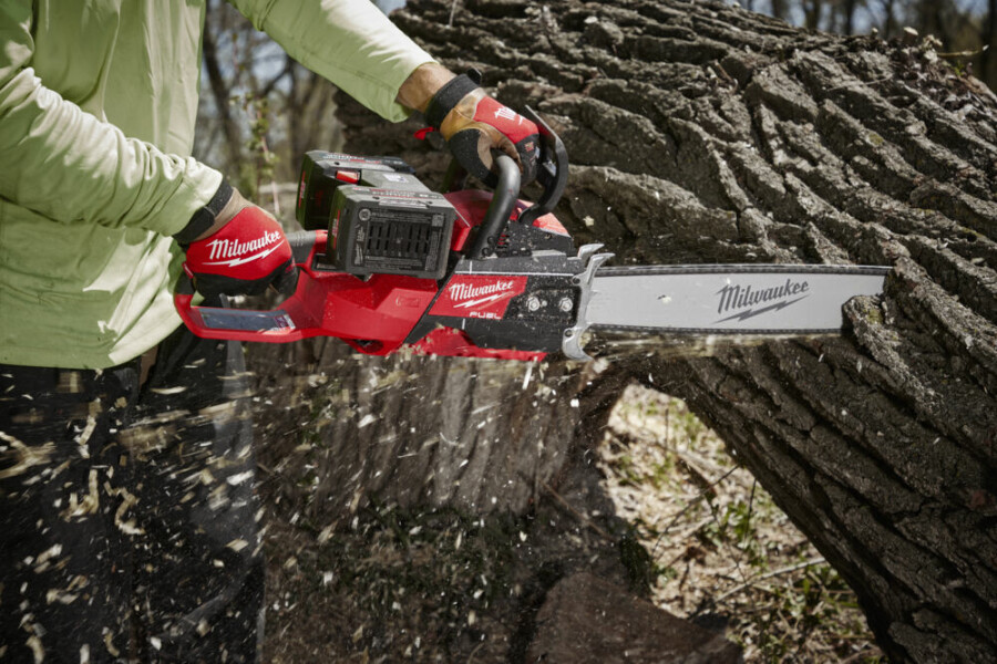 Omschrijving M18 Fuel Dubbele accu kettingzaag 50 cm Uitstekende zaagsnelheid in hardhout in vergelijking met 60 cc benzinekettingzagen Het piekkoppel van 9.5 Nm houdt de kettingsnelheid op peil bij zware toepassingen en voorkomt vastlopen. 50 cm zaagsysteem en een piekvermogen van 5.8 PK voor vellen en omzagen Goed zichtbare vizieren voor precisie en nauwkeurigheid Twee vermogensstanden geven de gebruiker de mogelijkheid om te kiezen tussen het hoogste vermogen of een langere werkduur Dubbele metalen velkam voor meer hefboomwerking bij het zagen Fuel™ technologie om in minder dan 1 seconde vol vermogen te bereiken Met de variabele snelheidstrigger heeft de gebruiker volledige controle over de vermogenscurve Oliereservoir met gemakkelijk toegankelijk reservoir en duidelijk kijkvenster Geleverd met 76cc olie, kettinggereedschap en kettingsbeschermer Het dna van ons Fuel™ platform herdefinieert het evenwicht van snoerloze technologieën. Milwaukee®'s Powerstate™ koolborstelloze motor, Redlithium™ accu technologie en Redlink Plus™ hardware en software intelligentie zorgen voor een uitstekend vermogen, een lange werkduur en duurzaamheid Flexibel accusysteem: werkt met alle Milwaukee® M18™ accu's