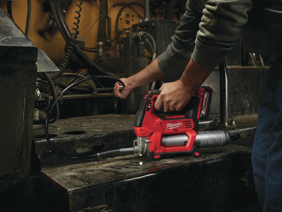 Krachtige 18 Volt motor voor een maximale werkdruk van 562 bar Redlink™ overbelastingsbeveiligingselektronica in zowel machine als accu voor onovertroffen duurzaamheid Beste werkduur in zijn klasse tot 7 vetpatronen per acculading Superieure balans en ergonomie meet slechts 355 mm in lengte, en 3.9 kg in gewicht Ontluchtingsventiel basismechanisme voor snelle doorstroming Geïntegreerde slangopslag, schouderlus en Led-brandstofmeter zorgt voor extra gebruikersgemak en minder stilstandtijd Extra gebruiksgemak en hogere productie door minder werkonderbrekingen Bulkfilterventiel Capaciteit vetpatroon 400 ml, 473 ml volume Individuele accucelbewaking voor het optimaliseren van werkduur en duurzaamheid van zowel machine als accu Redlithium™ accu biedt een superieure accuconstructie, elektronica en niet vervagende prestaties voor een langere werkduur en meer werk per acculevensduur Flexibel accusysteem: werkt met alle Milwaukee® M18™ accu's Geleverd met 1219 mm hogedrukslang met veerbescherming