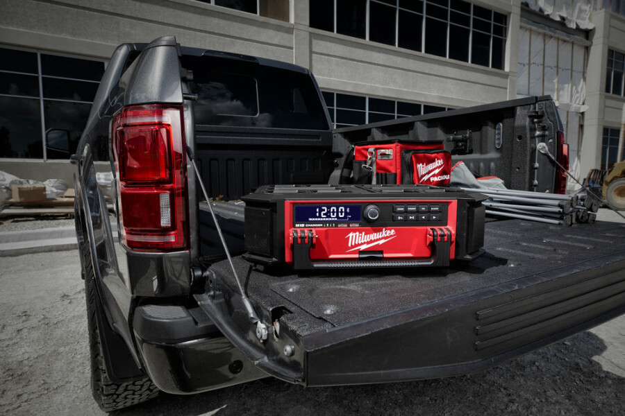 Premium 360° surround sound luidsprekers met een 40 Watt versterker die een rijk en vol geluid produceren voor binnen- en buitenruimtes DAB+ en AM/FM-tuner met digitale processor levert een hoge ontvangstnauwkeurigheid, signaalhelderheid en aanvullende informatie zoals: nummer, artiest en tijd Digitale Bluetooth® ontvanger: Speelt muziek af tot op 30 m afstand van uw smartphone, computer of tablet Compatibel met elk Milwaukee® Packout™ systeemartikel Ingebouwde oplaadfunctie voor het snel en gemakkelijk opladen van een M18™ accu of elektrische apparaten via de USB-poort IP57 in accu modus - maakt de radio stof- en spatwaterdicht AC/DC veelzijdigheid: Aangedreven door Milwaukee® M18™ accu's of netstekkervoeding Dekking van de volledige werkdag met een M18™ 5.0 Ah accu