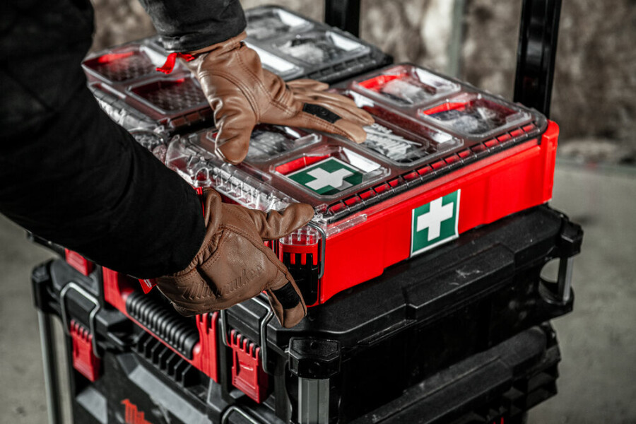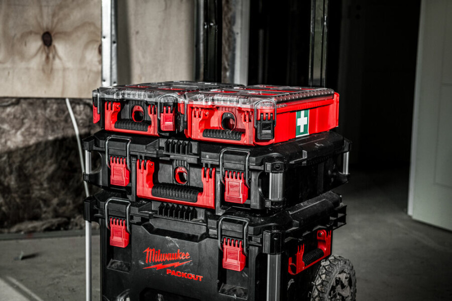 Snel herkenbaar tijdens een noodgeval dankzij de roodgekleurde Packout™ compact organiser